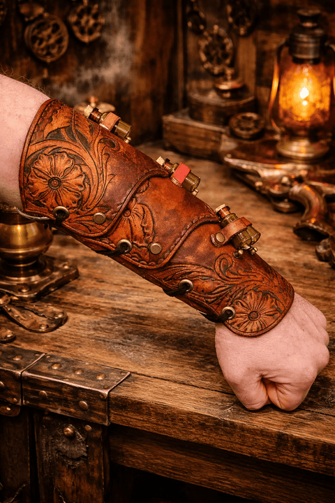 Brassard steampunk en cuir avec montre à pile et serrure – Taille ajustable