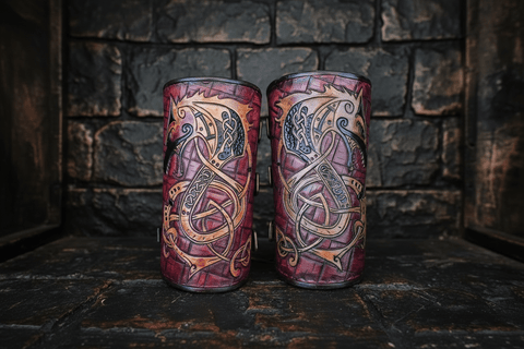 Brassard viking en cuir – Symbole Fenrir & runes | Bracelet médiéval artisanal
