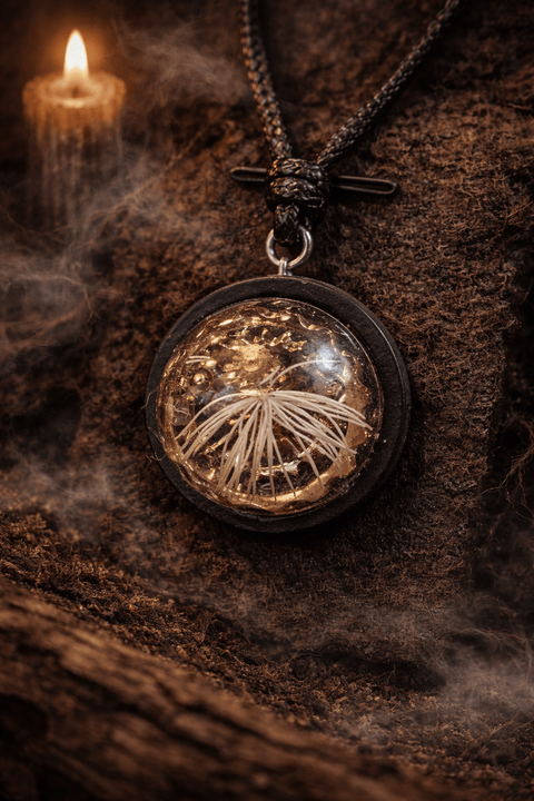 Pendentif botanique en résine – Fleur et filaments végétaux