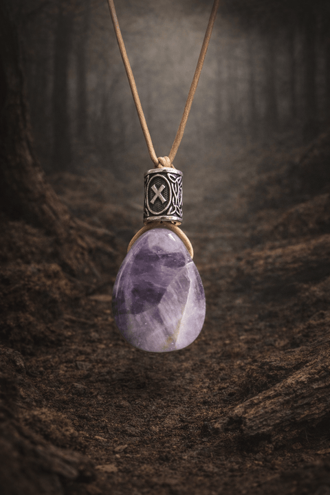 Pendentif en améthyste naturelle – bijou artisanal en acier inoxydable, Tir na Telennaria
